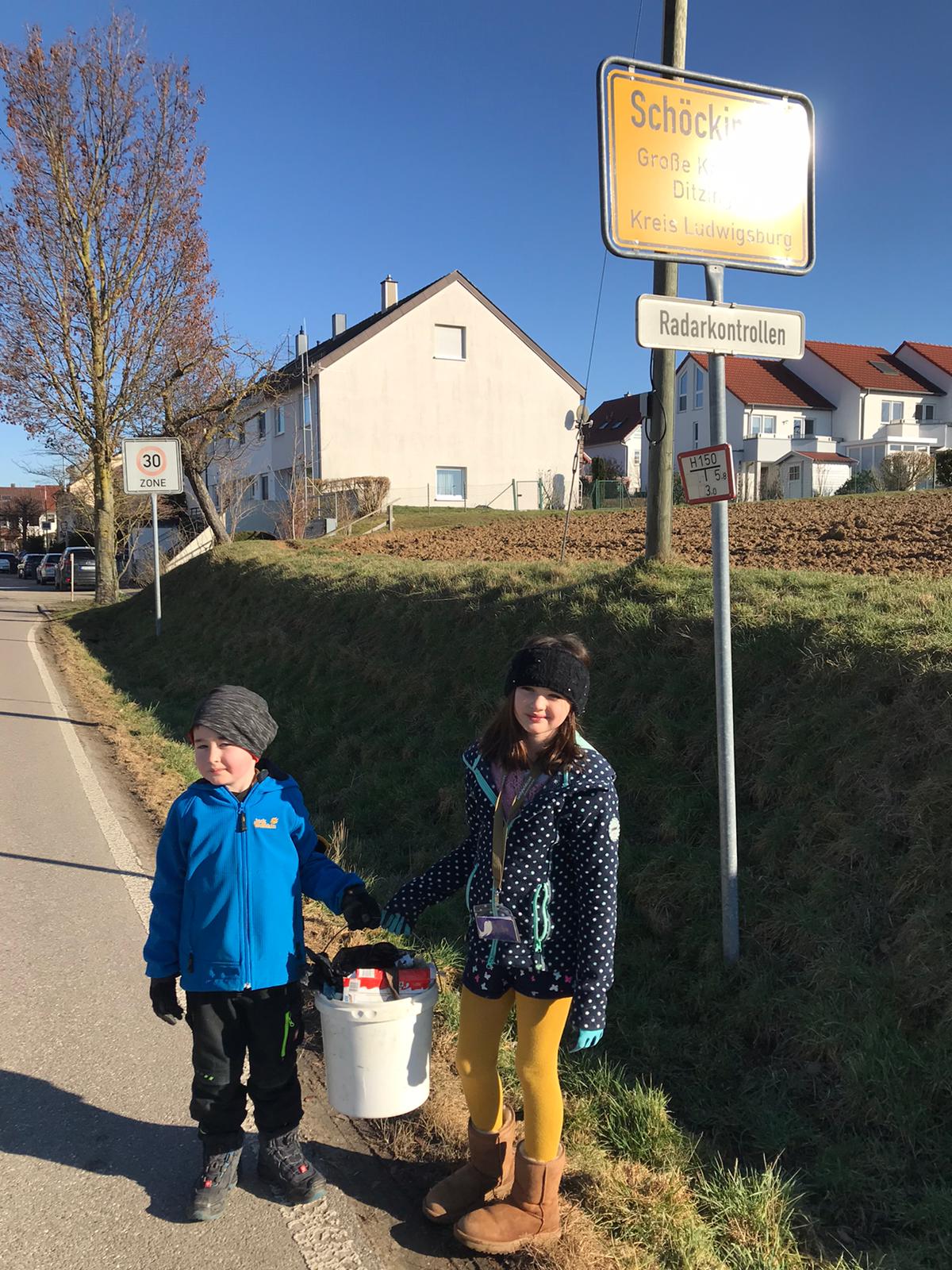 Philipp, Jette, Janne und Lilli haben heute rund um den Boltze 5 Eimer voll gesammelt!